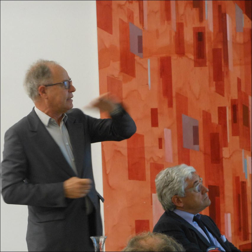Pierre de Meuron (l.) präsentierte zusammen mit Oberbürgermeister Sören Link (nicht im Bild) und Museusdirektor Walter Smerling (r.) die Planungen. Foto: Petra Grünendahl.