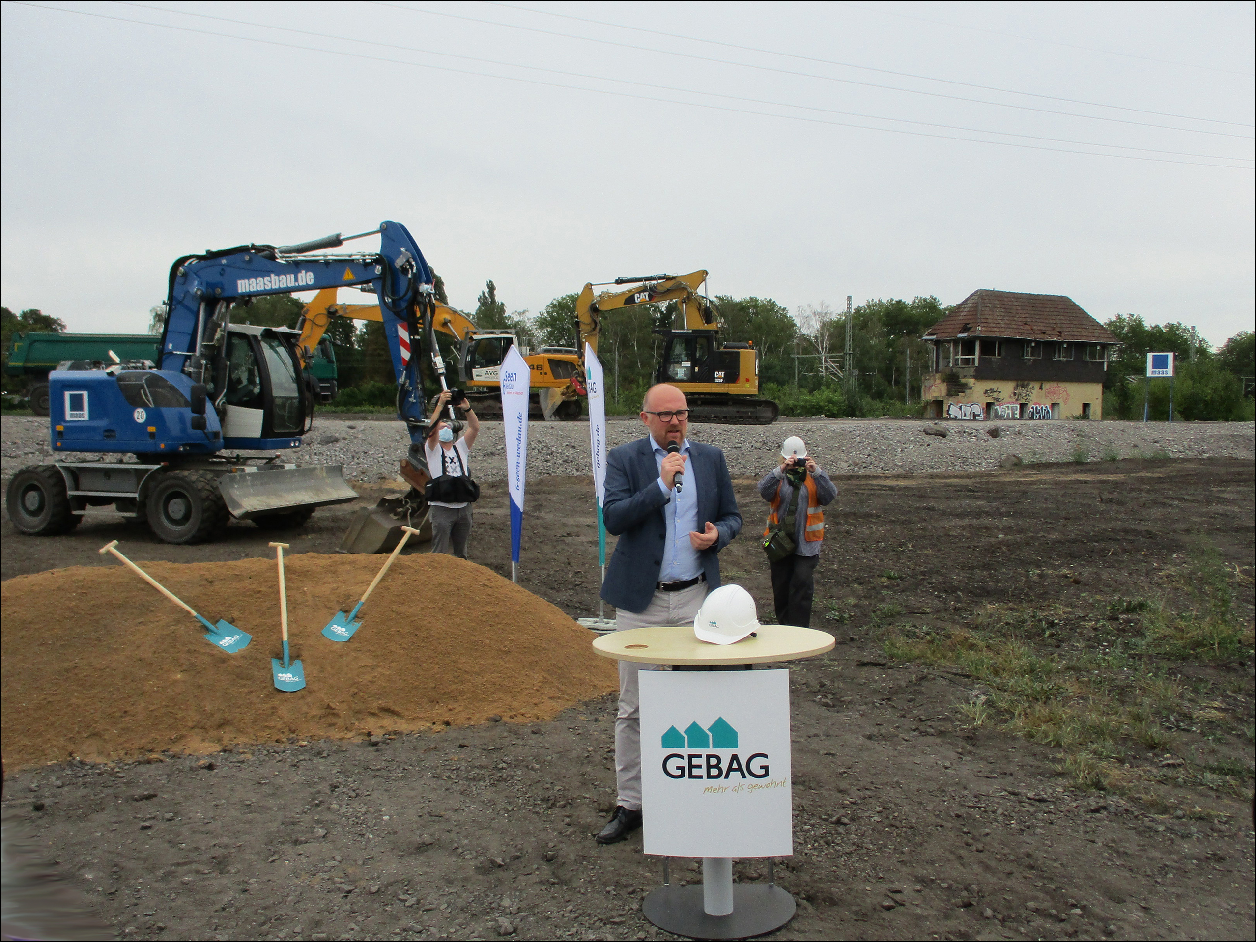 Oberbürgermeister Sören Link. Im Hintergrund laufen die Arbeiten am Fundament des Lärmschutzwalls. Foto: André C. Sommer.