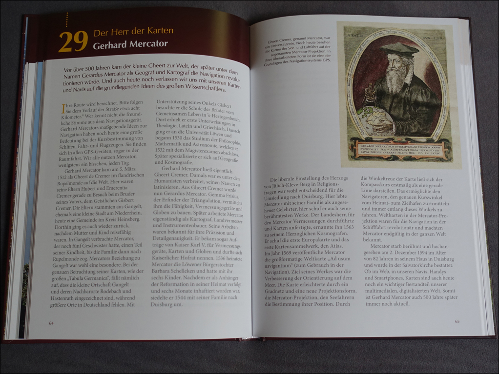 Gerhard Mercator in Manfred Schmidts „Duisburg 55 Highlights …“. Foto: Petra Grünendahl.
