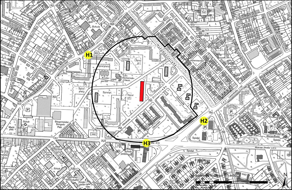 Die Evakuierungszone für die Sprengung muss Sonntagmorgen bis 8 Uhr geräumt sein. Karte: Stadt Duisburg.