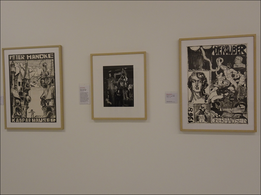 Theater Oberhausen: Ruhrgebietschronist Rudolf Holtappel zwischen Plakaten von Walter Kurowski in der Ludwiggalerie Schloss Oberhausen. Foto: Petra Grünendahl.