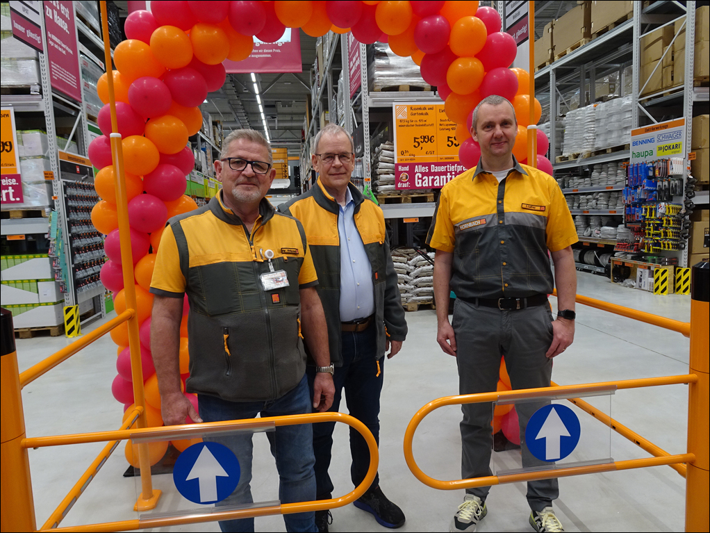 Hornbach-Marktmanager Frank Fritzsch, Vorstand Albrecht Hornbach und Enrico Gaffrey, Gebietsleiter NRW. Foto: Petra Grünendahl.