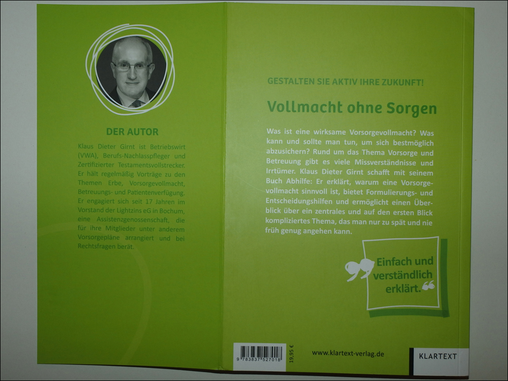 Ratgeber ICH HABE VORGESORGT im Klartext Verlag. Foto: Petra Grünendahl.
