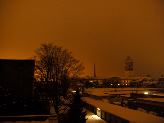 Duisburg, 27. Dezember 2010 um 6:42 Uhr mit ISO200: Morgenrot im Westen