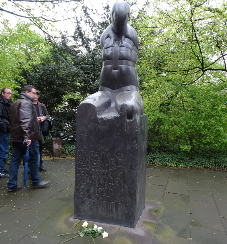 Am Rathaus: Gedenken an die im Nationalsozialismus ermordeten Gewerkschafter. Foto: Petra Grünendahl.